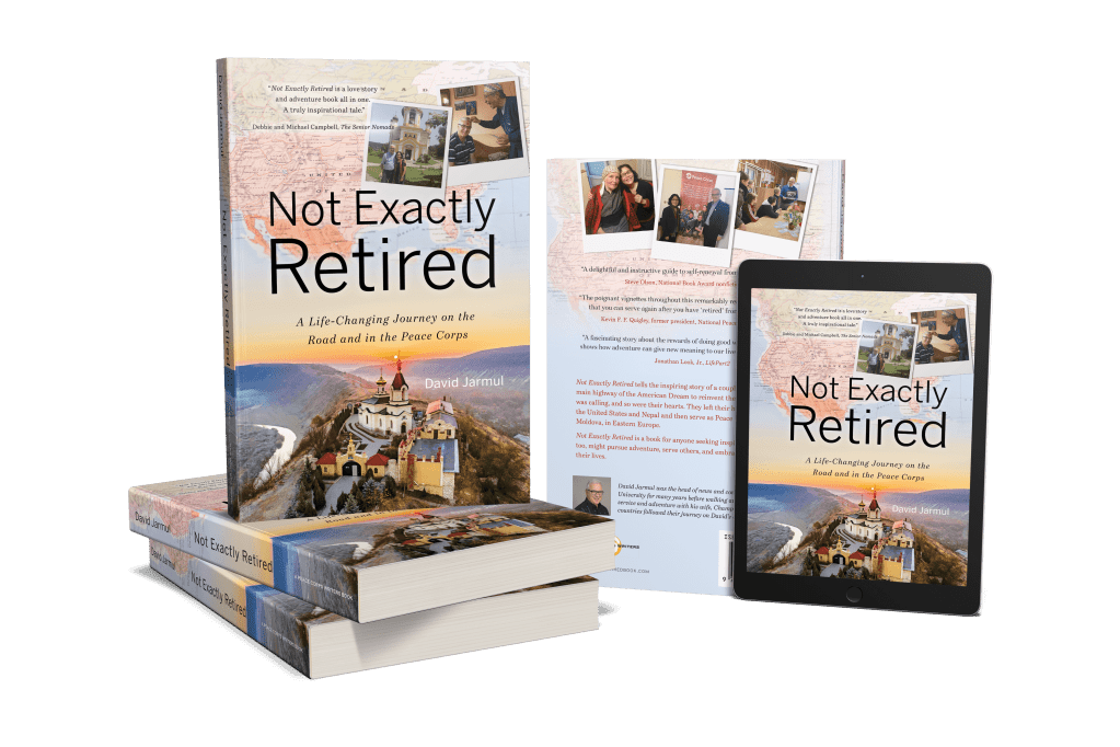 Not Exactly Retired tells the story of a couple who steered off the main highway of the American Dream to reinvent themselves. They wandered around the United States and Nepal and then served as Peace Corps volunteers in Moldova, Eastern Europe.